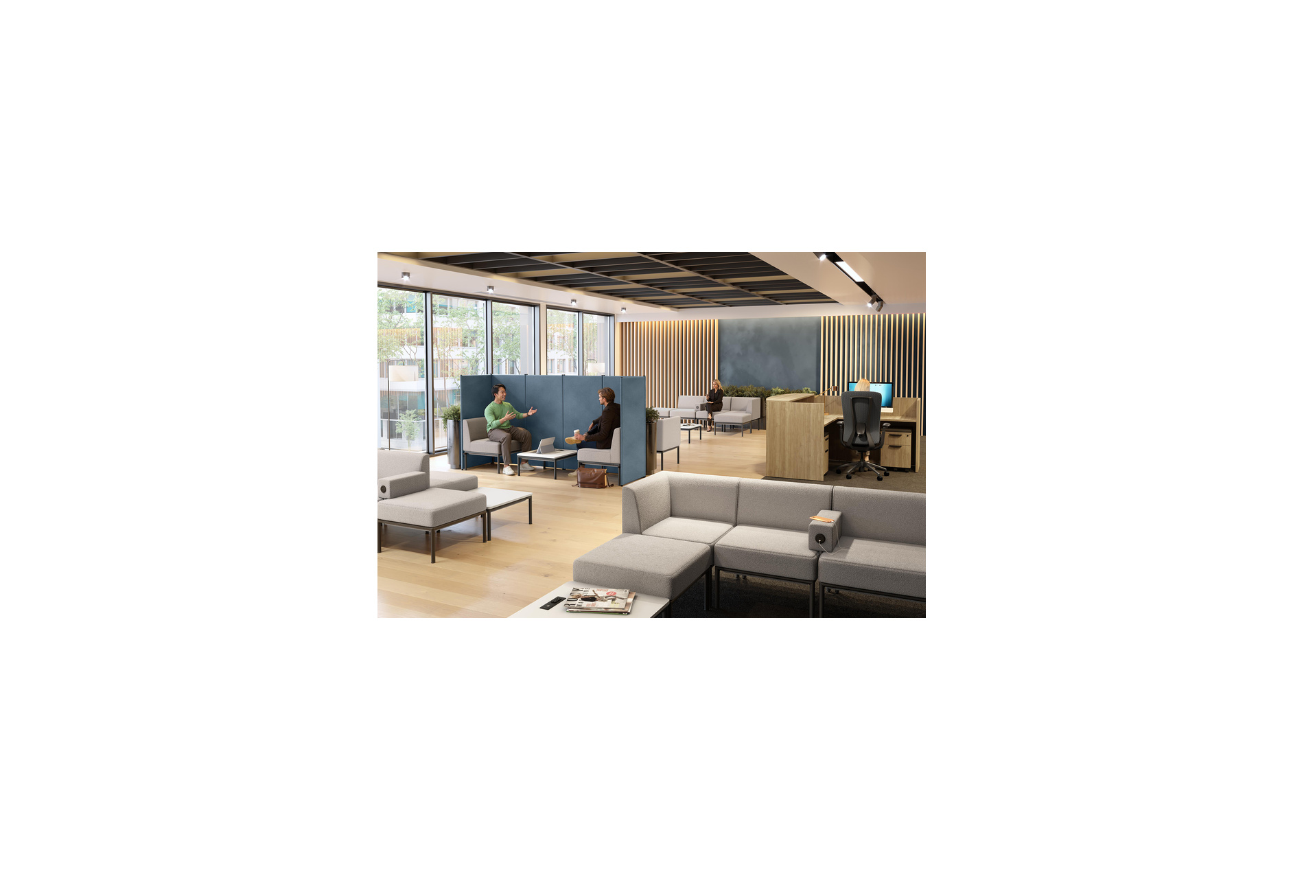 Konfurb Konnect is a modular reception seating and panel system built for fast, flexible change. Sofa and